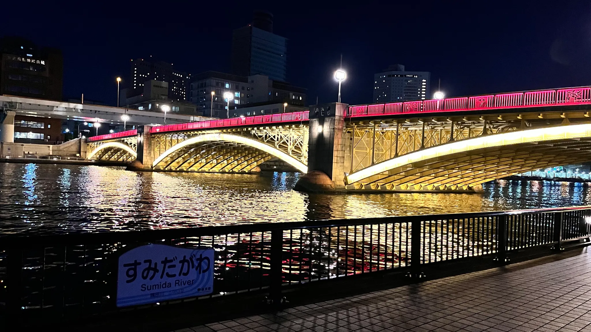 스미다가와 테라스의 야경, 족히 3~4키로 정도는 연결되어 있어서 조깅하시거나 산책하시는 분도 많습니다