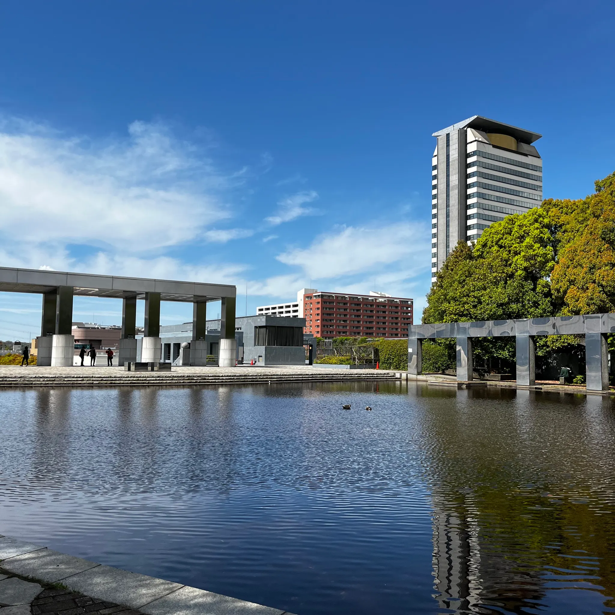 연못과 도시 경관이 어우러진 신유리가오카 근처의 공원