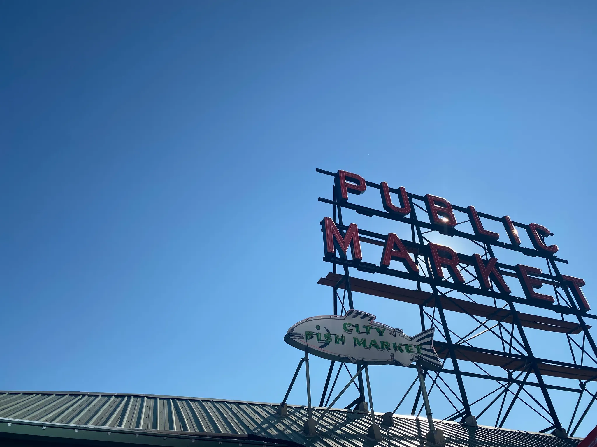 선착장 70번 쪽에서는 스페이스 니들의 꼭대기가 보입니다.