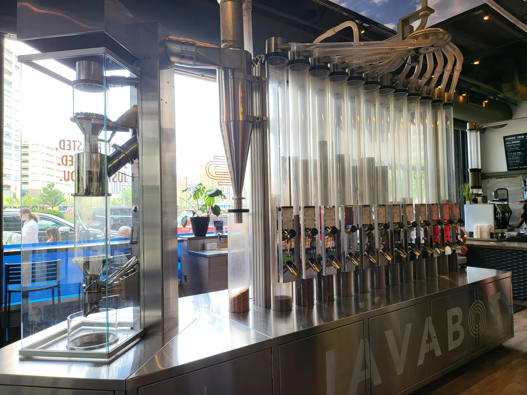 단순히 이동만하는 것이 아니라 원두볶는일까지 자동이다. 여타할 까페들은 포장된 볶아진 원두를 쓰거나 또는 미리 다른 곳에서 원두를 볶아서 사용하는 것에 반해 재고량에 따라 알아서 원두들이 배합되고 볶아진다. 기계에는 javabot이라는 귀여운이름도 붙여져있다.